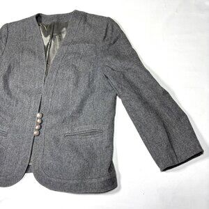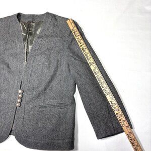 VTG Norgail LTD New York Gray 100% Wool Collarless Blazer Sport Coat Womens L