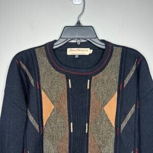 VTG Norm Thompson Wool Leather 3D TEXTURED SWEATER XL Coogi Style Biggie Cosby