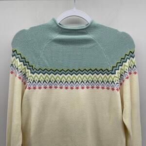 VTG Northern Isles Sweater Cream Fairisle Snowflake Mock Neck Soft Y2K Apres Ski