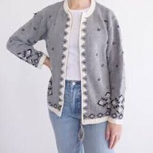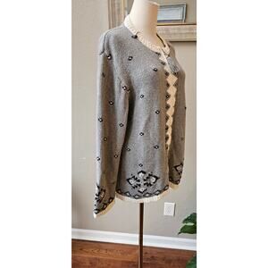VTG Northern Reflections Women Zip Up Nordic Print Cardigan Sweater Size L Gray