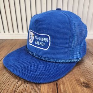 VTG Northern Energy NEI Snapback Hat Cap Blue Corduroy Rope Embroidered Mesh