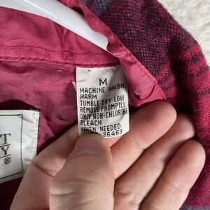 This vintage Northwest Territory shirt is perfect for casual occasions and features a collared neckline with a button closure. The shirt is made of lightweight acrylic flannel fabric, making it suitable for all seasons. It also has pockets for added convenience. The red plaid shirt has an embroidered logo and is perfect for a day out in the great outdoors, whether it's for camping, hiking, or just enjoying a picnic. The shirt has a regular fit and is available in a men's medium size. It is machine washable and was made in Korea, Republic of. Get ready to channel your inner lumberjack with this stylish shirt.