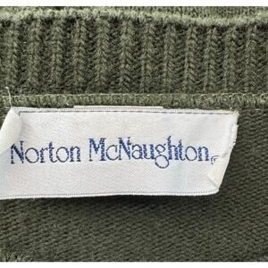 VTG Norton McNaughton Olive Green Mixed Print Knit Cardigan Sweater USA Small