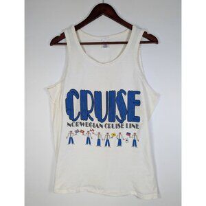 VTG Norwegian Cruise Lines Unisex White T-Shirt Sz Large USA Made Vintage Beach Vacation Tank Top 80s 90s. Measures approximately 20" armpit to armpit and 24" in length down the middle of the back