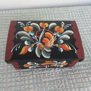 VTG Norwegian Rosemaling Wooden Trinket Box Hand Painted Folk Art