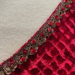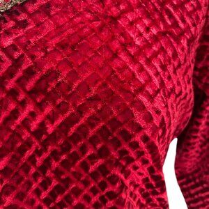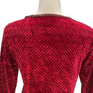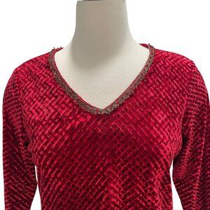 VTG Notations Petite M Red Velvet Festival Top Holiday Party Luxe Sparkle Trim