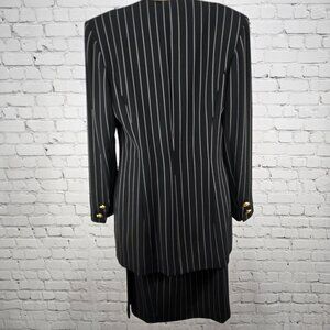 VTG Noviello Bloom Bergdorf Goodman Black Pinstriped Two Piece Skirt Suit Size 4