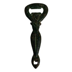 Vintage cast iron bottle opener featuring a nude lady design. Beautiful patina adds character to this collectible piece. Perfect for vintage decor or functional use.
