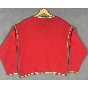 This VTG NutCracker Christmas Cardigan Sweater is a vintage women's clothing piece perfect for the holiday season. The red sweater features an embroidered snowman design, making it a festive and fun addition to your winter wardrobe. With a classic fit and long sleeves, this tight-knit sweater is ideal for various occasions including parties, casual outings, and even business events. The cardigan style, knit buttons, and beaded accents add a touch of charm to this 90s-inspired piece, making it a standout choice for those looking to add a bit of retro flair to their holiday look.