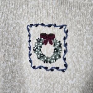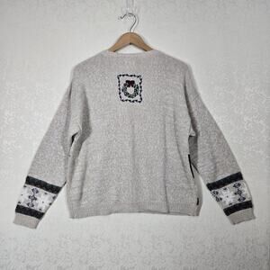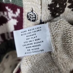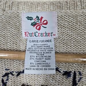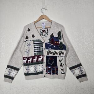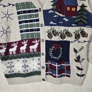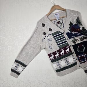 VTG Nutcracker Cardigan Sweater sz L Beige Multi Cabincore Cottagecore Holiday