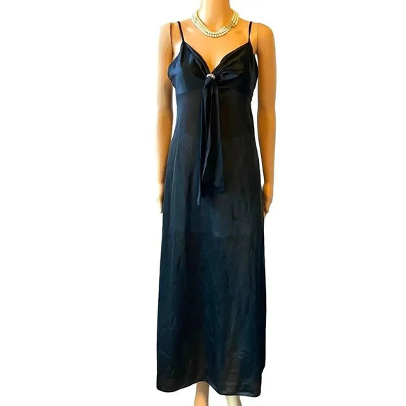 VTG Nylon Style 67970 Black Elegant Hot Sexy Maxi Nightgown Robe Women Size S. Good Condition with a small hole no brand tag. G13mar24. L259