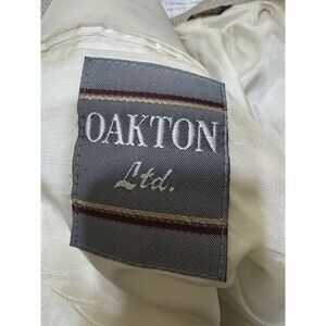 VTG OAKTON LTD Linen Poly Viscouse Beige Textured Blazer 2 Button Jacket Sz 46L