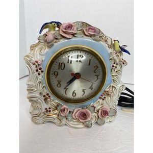 The clock is powered by plug making it a reliable and functional piece. The ceramic and porcelain frame material, along with its multicolor design, add to its appeal. This desk clock is perfect for those who appreciate vintage and retro-style decor. Tested works Does need cleaning from dust got this at an Estate sale No crack Please see all pics to see the condition of this clock. If you have any questions please message me. Thanks again Ships fast