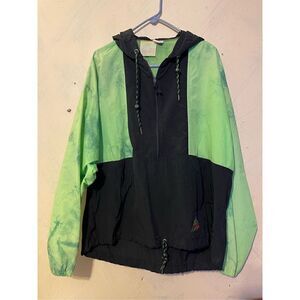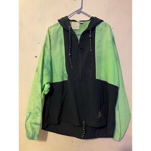 Nice vintage Neon green pullover hooded windbreaker across chest 25”