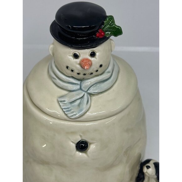OMC Otagiri snowman, dog cookie jar, Gibson Christmas canister, holiday candy jar, ceramic snowman decor, collectible Christmas pottery, winter kitchen décor