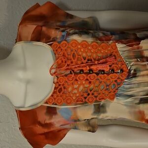 VTG ONE WORLD Floral Watercolor Lace-up Tunic