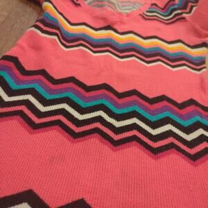 VTG OP Sport Women's Medium Sweater Aztec Pink Colorful Stripe Fair Isle V-Neck