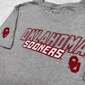Showcase your team spirit with this classic Champion Oklahoma Sooners tee, featuring bold embroidered lettering and iconic logo details on the sleeves. Crafted from a soft cotton-viscose blend, this heathered grey shirt offers a comfortable, breathable fit that's perfect for any fan. The high-quality embroidery adds a premium touch that stands out from standard screen-printed gear. Ideal for game days at the stadium, casual campus wear, or relaxing at home during the big game.