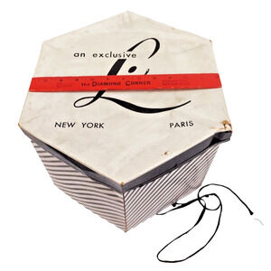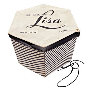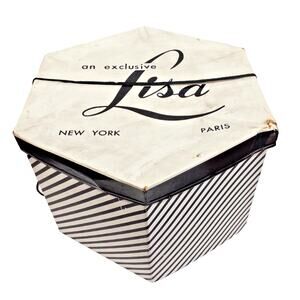 Vintage Octagon New York Paris Hat Box by Lisa Exclusive with Lid and from the 50's is in used, but in fair, still usable condition.