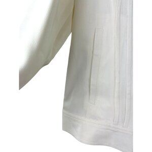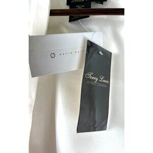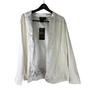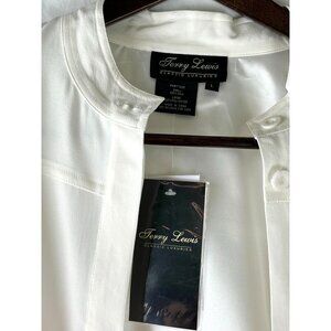 Luxurious white Terry Lewis Silk Bomber Jacket in men's size large. Showcasing a button closure, side pockets, buttoned cuffs, and a pleated design. With its medium weight and 100% silk material, experience ultimate comfort and style.