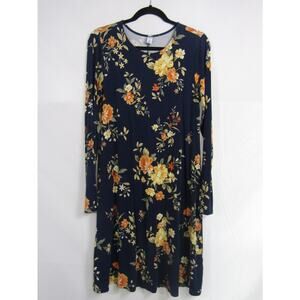 VTG Old Navy Blue Floral Dress sz MT Midi Boho Rayon Cottagecore 90s Y2K Cozy