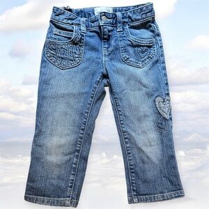 VTG Old Navy Girls Sz 6 Blue Denim Jeans Embroidered Patches Straight leg