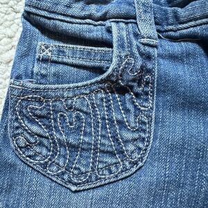 Stylish blue denim jeans for kids, perfect for everyday wear. Features heart embroidery for a cute touch.