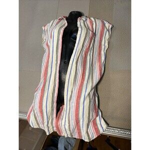 VTG Old Navy Linen Shirt Cap Sleeve Beach Pin Stripe Pink Green 55% Linen India