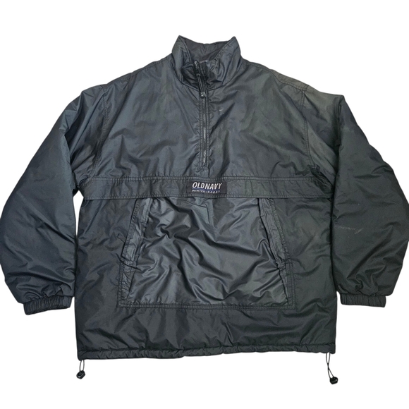 Vintage 90s Old Navy Winter Sport Reversible 1/4 Zip Pullover Anorak Ski Snow Quilted Puffy Jacket Men's XL RARE