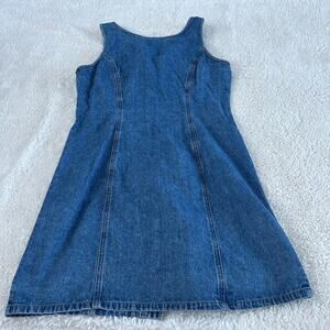VTG Old Navy Womens Sz 6 Blue Denim Sleeveless Y2K Button-Up Dress Cottage Girl