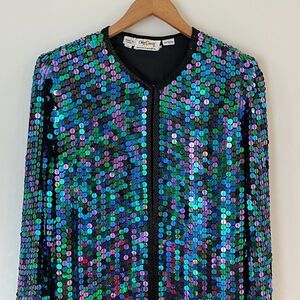 VTG Oleg Cassini All Over Sequin Silk Jacket Glam Evening Colorful Oversized M