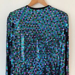 The jacket features a colorful sequin design making it perfect for parties, cocktails, and other special occasions.