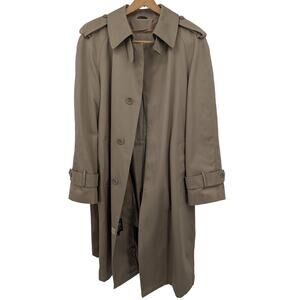 VTG Oleg Cassini Khaki Double Breasted Trench Coat Size 36R w Removable Liner