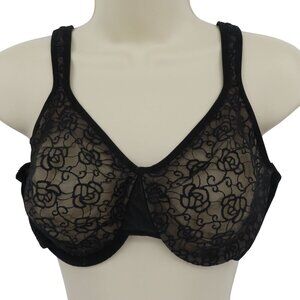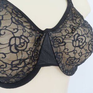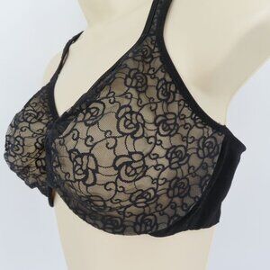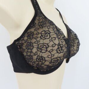 VTG Olga Christina 36DD Bra 55007 Black Floral Flower Lace Underwire Unlined
