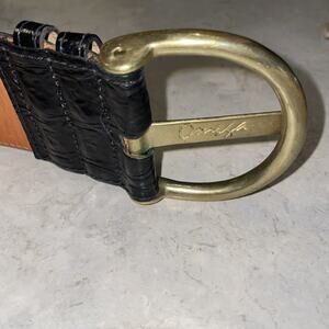 VTG Omega Black Croc Embossed 2.2 Wide 38.5”Leather Belt Size M Made in America