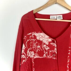 VTG Only Necessities Floral Patchwork Button Down Long Sleeve Blouse