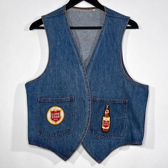VTG Open Front Vest With Lone Star Beer Patches Size M *NO TAGS