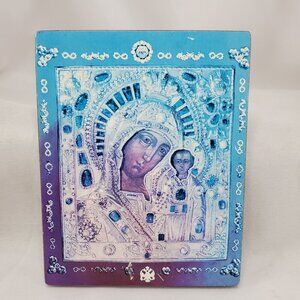 VTG Orthodox Religious Icon Of Our Lady Of Kazan Mother of God On Wood 5x4 Inch