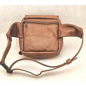 VTG Orvis Tan Leather Waist Pack With Multiple Zippered Pockets Adjustable Strap