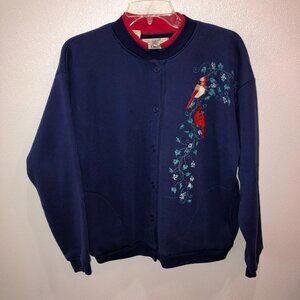 VTG Orvis Women Small Medium Blue Cardinal Cardigan Sweatshirt Grandma Pockets