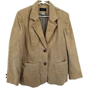 VTG Oscar De La Renta Corduroy Blazer Jacket Two Button Flap Pockets Camel 14