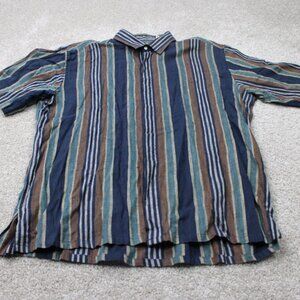 VTG Oscar De La Renta Shirt Mens Large Blue/Green Cotton/Linen/Ramie S/S Button