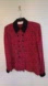 Ruby silk blouse w/ black floral print, central panelling, + shoulder pads (easily removed)