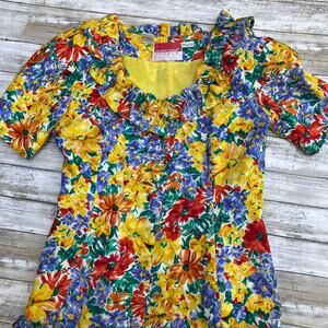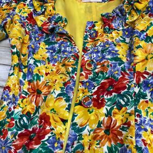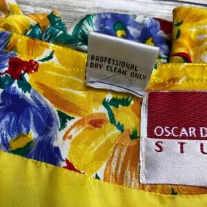 VTG Oscar de la Renta Studio Silk Blouse Top Jacket Small Floral Button Ruffles