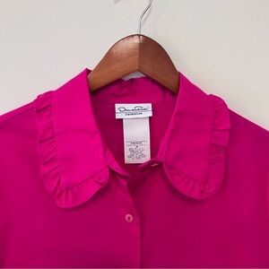 Hot pink swim cover-up/tunic. Button front. Ruffle collar. Excellent condition. 100% cotton. USA made.