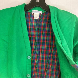 VTG Osh Kosh 80’s Kids Cardigan Green With Plaid Long Sleeve 5T Made In USA