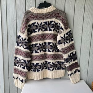 otavalo sweater, handmade wool sweater, ecuador knitwear, chunky knit, unisex vintage, fair isle style, apres ski, scandi sweater, cozy wool pullover, cabincore, rustic winter style, artisan handmade, boho cozy, mountain lodge, warm wool knit, geometric pattern, vintage craftsmanship, natural fibers, retro ski style, timeless sweater