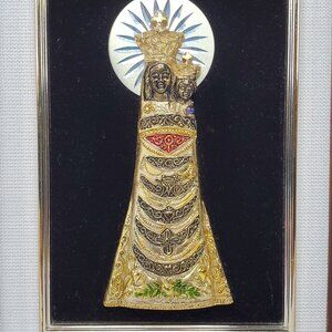 VTG Our Lady of Loreto 3D Plaque Icon In Gold & Black Velvet Frame 7.75" x 6"