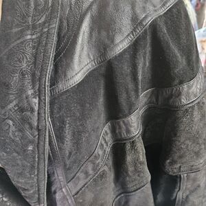 Vintage Outbrook Black Leather and Suede Trench Coat Sz Med
