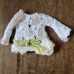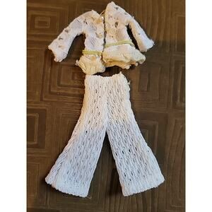 Vintage Outfit For Dawn Doll White Lace Pantsuit with Pearl Buttons & Green Trim.